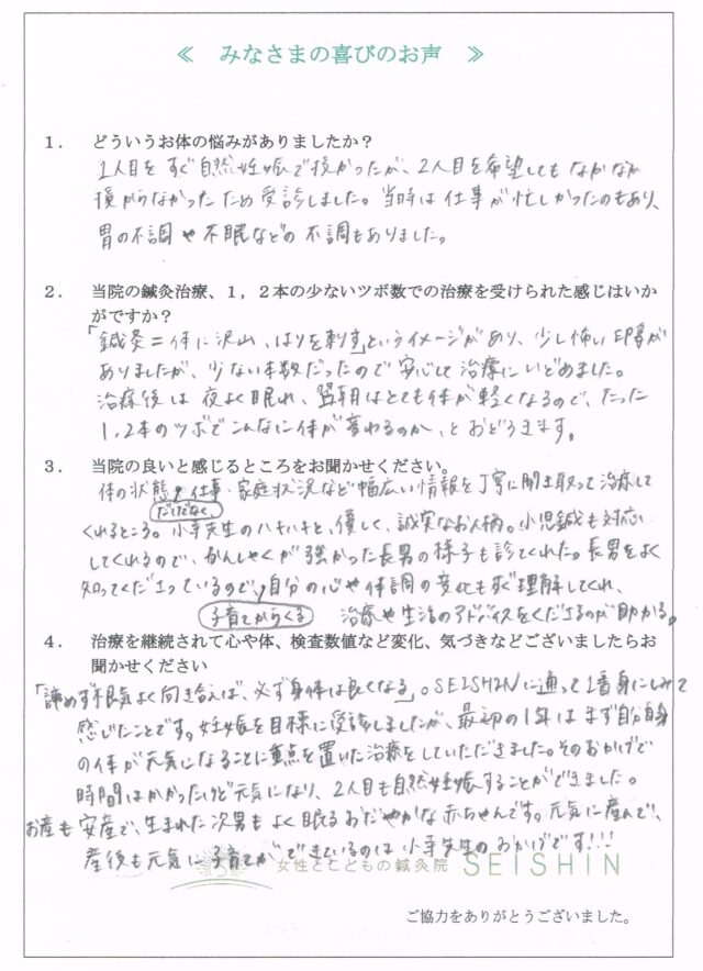産後も元気に子育てができているのは小寺先生のおかげです!!!